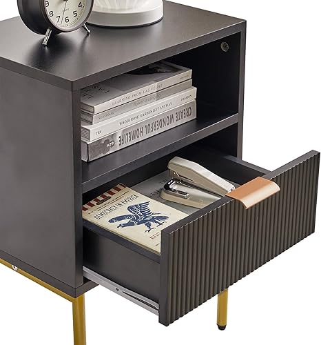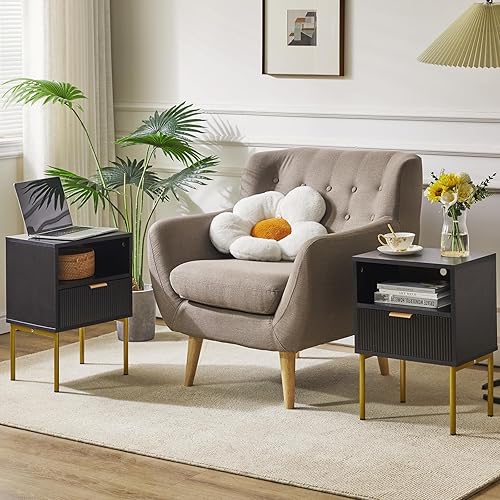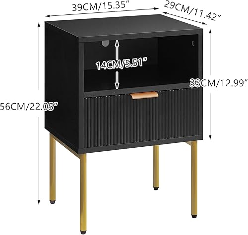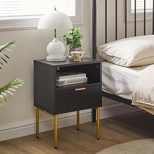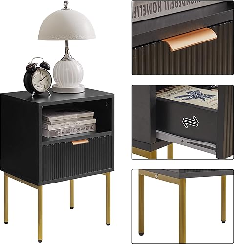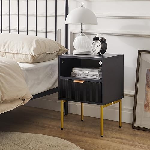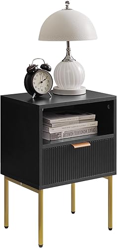 IBUYKE Table de Chevet Mid-Century Moderne avec Tiroir de Rangement, Petite Table d'Appoint Noire pour Chambre à Coucher, Salon, Blanc WNS008W