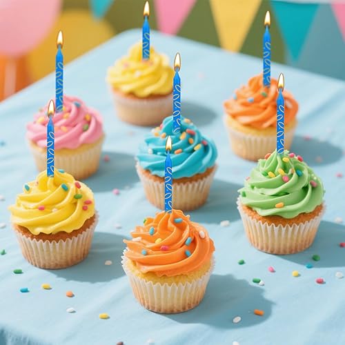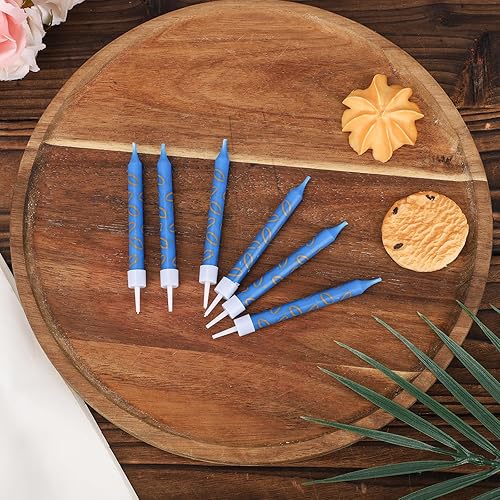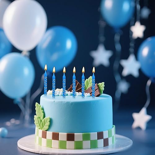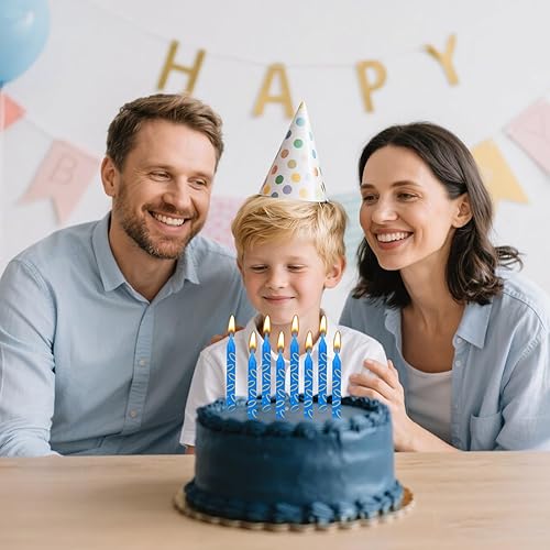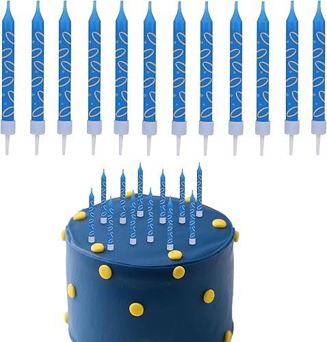 SAVITA 12 Bougies D'anniversaire, Bleues avec Anneau Doré Décorations Gâteaux à Thème Personnages de Dessins Animés pour Fête D'anniversaire de Garçons et Filles