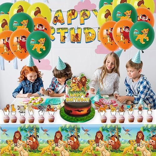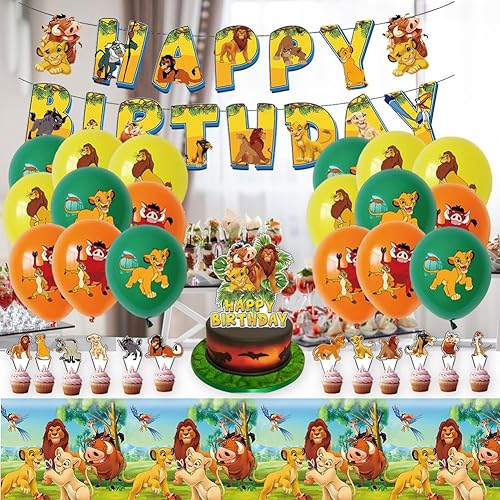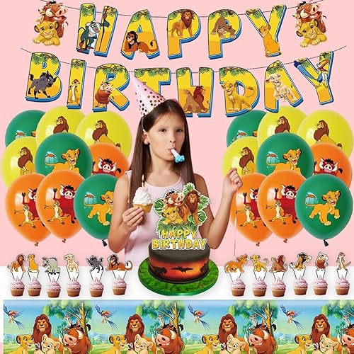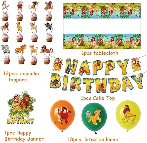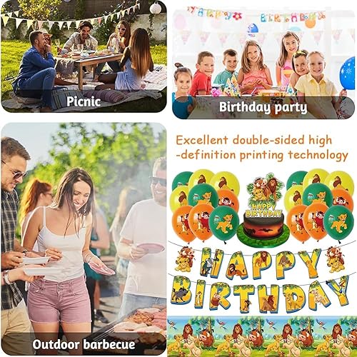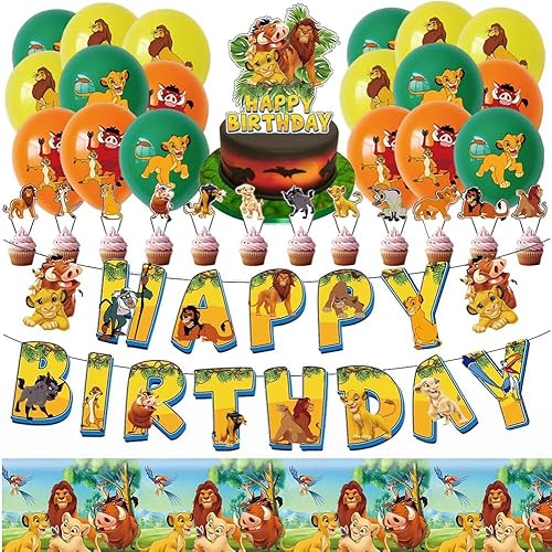 35PCS Décorations Pour Fêtes De Lion Nappes,Déco Anniversaire, Décorations De d'Anniversaire d'Enfant Thème De Lion Avec Bannière Happy Birthday Ballons Latex Décoration De Fête à Suspendre