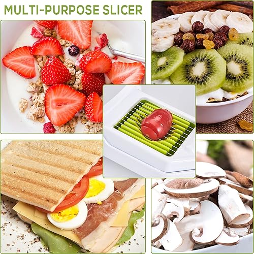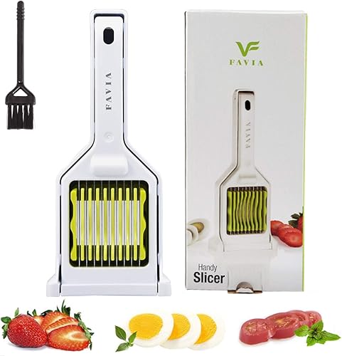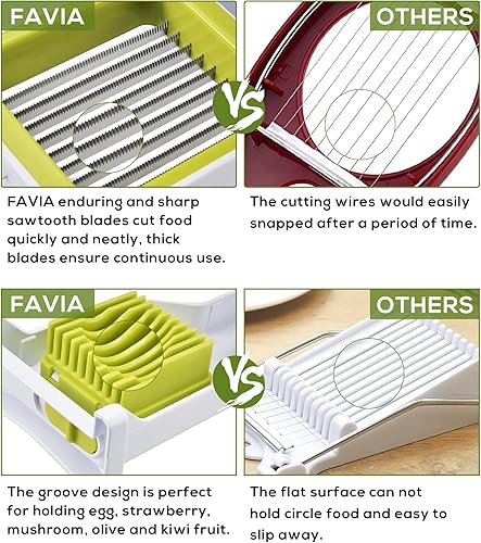 FAVIA Coupe-Oeufs Trancheuse à œufs manuelle, 9 lames en acier inoxydable,Multifonctionnel ustensile de cuisine, pour préparation de fraise cerise tomate salade, sans BPA, va au lave-vaisselle