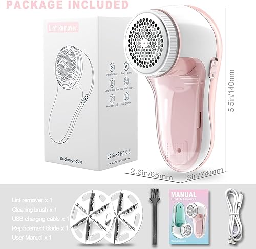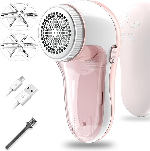 Rasoir électrique Anti-Peluches Rechargeable avec 2 Lames de Rechange, Rasoir Portable pour Peluches et Tissus