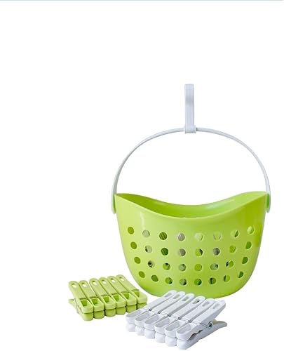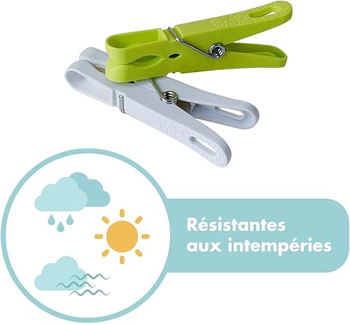 LAGUELLE - Panier Galet avec 48 Pinces Antiglissantes Recyclées - Fabrication Française - Pinces Assorties (Vert et Blanc)