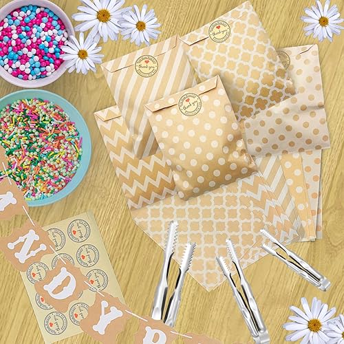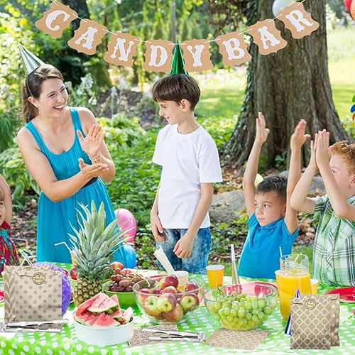 GOTFUN Lot de 72 accessoires de bar à bonbons - Contient 60 sachets de bar à bonbons et 6 pinces à sucre, 5 autocollants et 1 guirlande décorative de bar à bonbons - Kit de décoration pour buffet,