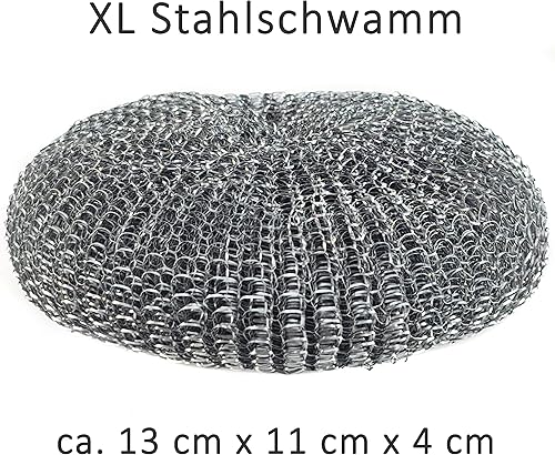 escleano | Éponge ovale XL en acier inoxydable, grattoir à casserole, tampon de nettoyage 13 x 11 x 4 cm - 100 % acier inoxydable (10 pièces)