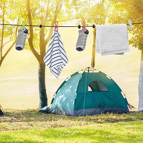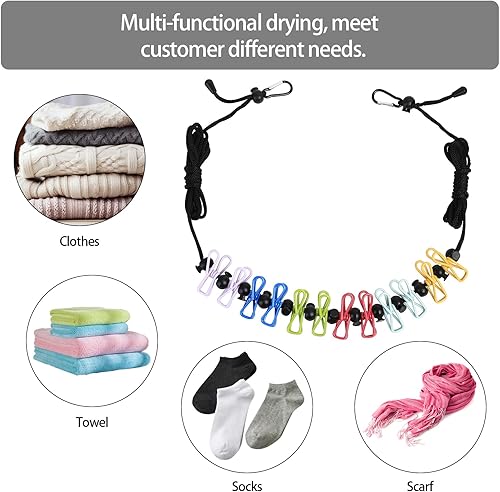 Corde a Linge Retractable, 4 Mètres Fil Linge Retractable Portable, Fil à Linge, Corde à Linge Rétractable avec 12 Pinces à Linge pour Intérieur Extérieur Accessoires de Camping Voyage