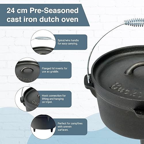 Buckingham 24 cm 4 l en Fonte pré-enduite Marmite en Fonte Noir