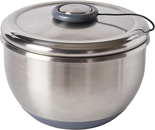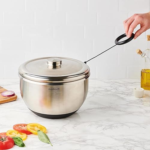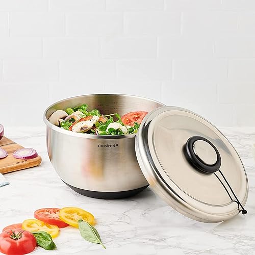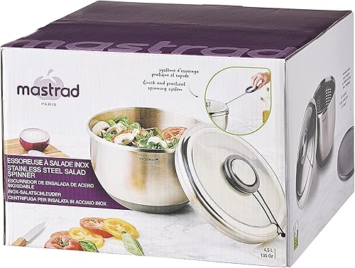 Mastrad - Essoreuse A Salade En Inox - Graduation Intérieure - Capacité 4,5L - Couvercle En Plus Pour Conserver Les Restes Acier Inoxydable 18/8 - Gris et Noir