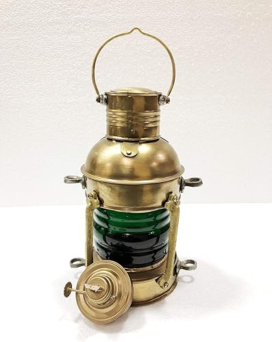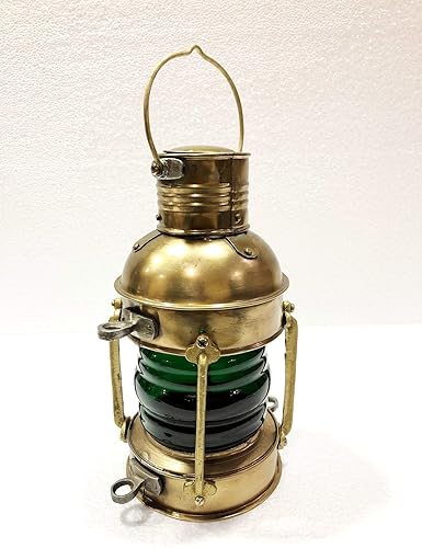 ANTIQUE 12 Pouces Hauteur Cargo Vert Huile Lanterne Lampe en Laiton Marine Marine Nautique Décoration