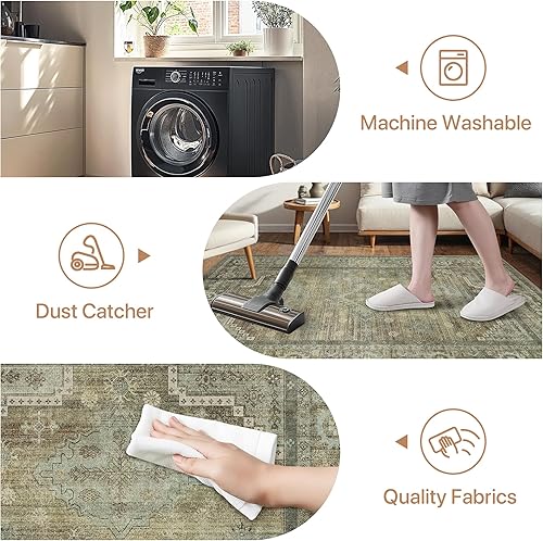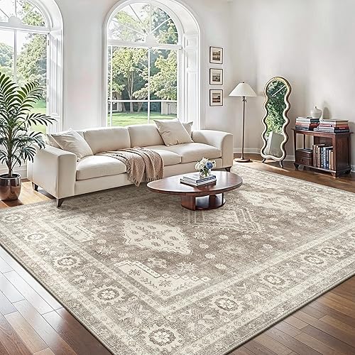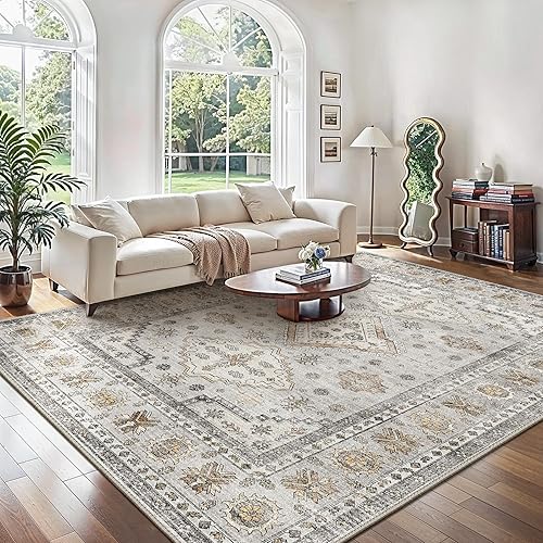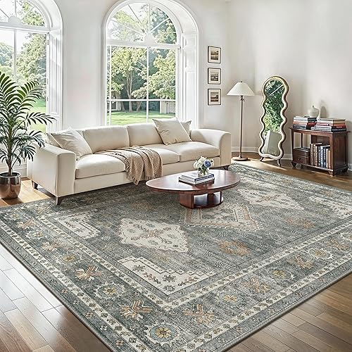 GENIMO Tapis Salon Lavable en Machine, Vintage Moquette pour Chambre et Salon Cuisine, Moderne Lavable Dessous antidérapant Paillasson Durable, Gris Foncé,160x230CM