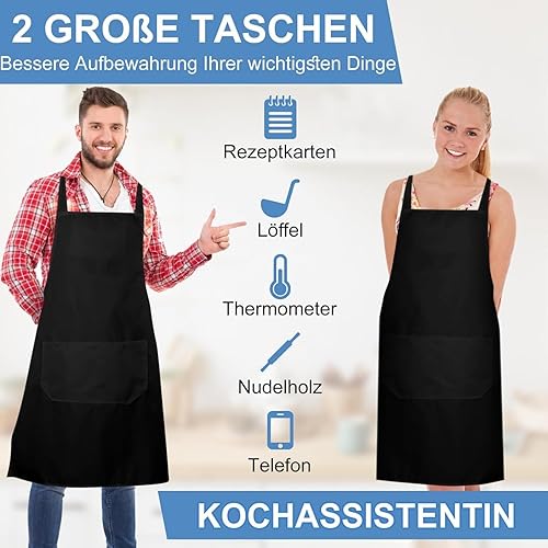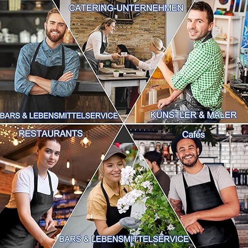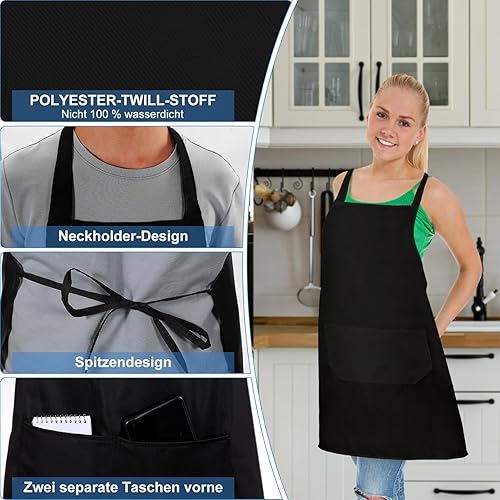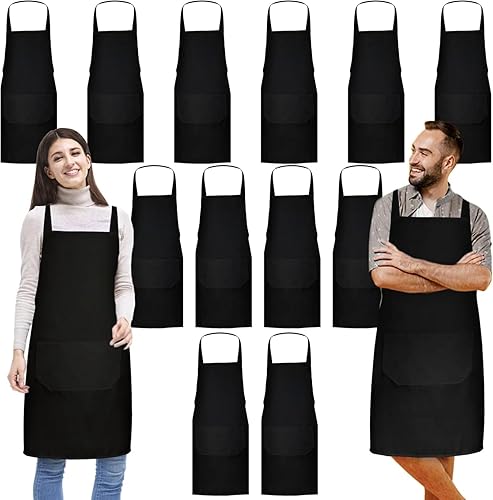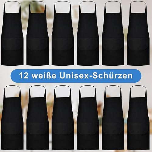 Jeffbaubl Lot de 12 tabliers de cuisine, réglables, avec 2 poches, tour de cou réglable, unisexe, pour cuisine, pâtisserie, restaurant, café