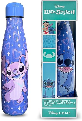 Coriex Stitch Gourde pour enfant - Bouteille isotherme en aluminium sans BPA 500 ml - Isolée - Bouteille d'eau durable - Cœur bleu