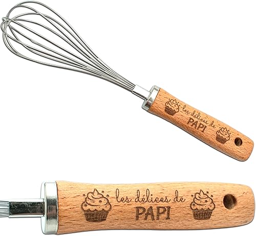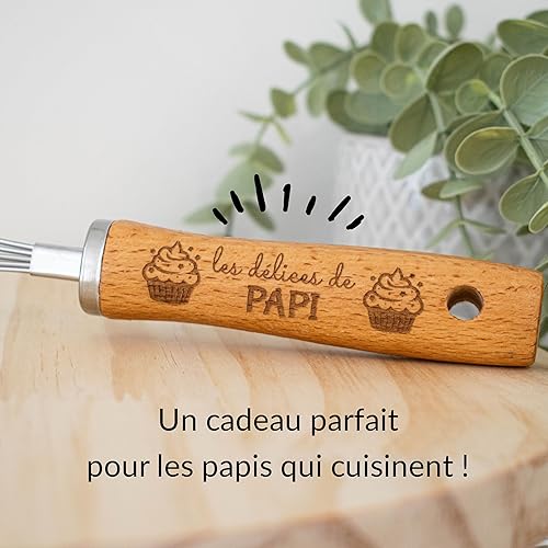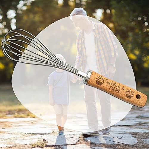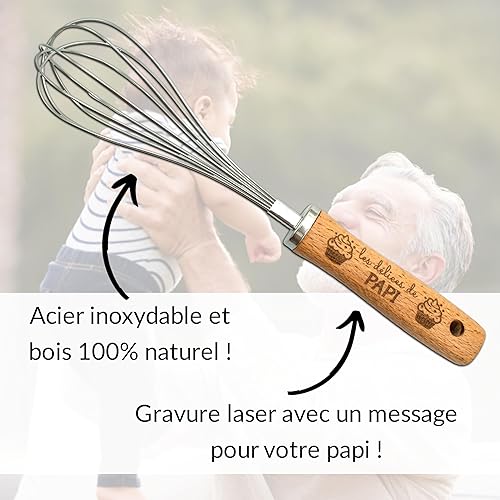 ERNESTINE - Fouet cuisine papi personnalisé - cadeau papi personnalisé - cadeau fête grands pères - fouet cuisine acier et bois - idée cadeau papi - cadeau papi unique cuisine - idée anniversaire papi