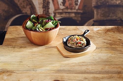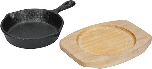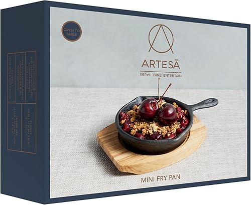 Artesà Mini Poêle à Frire avec Planche de Service en Bois dans Coffret Cadeau, Rond, Fonte, 16 x 11,5 x 2,5 cm/13,5 x 10,5 x 1,5 cm