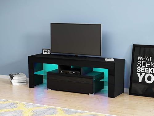 Panana Meuble TV LED, Banc TV, Éclairage LED RGB avec Couleur réglable, Convient pour Salon ou Chambre, 130x35x45cm (Noir)