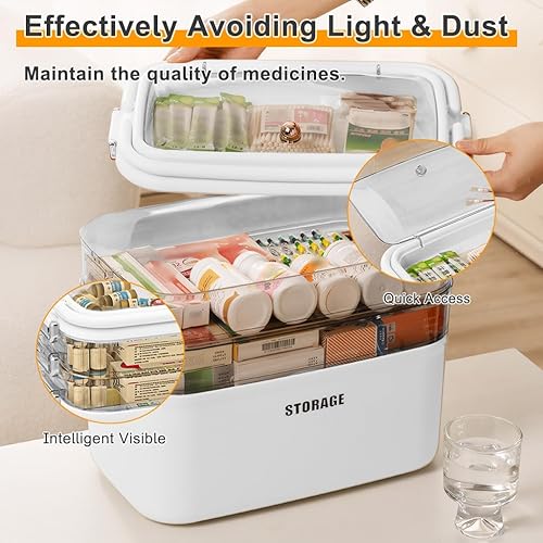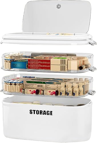Yiomxhi 4 Niveaux Boîte de Rangement de Médicaments, Grand Armoire a Pharmacie avec Poignées, Trousse de Premiers Secours Familiale Portable Vide pour Maison et Voyages, Blanc