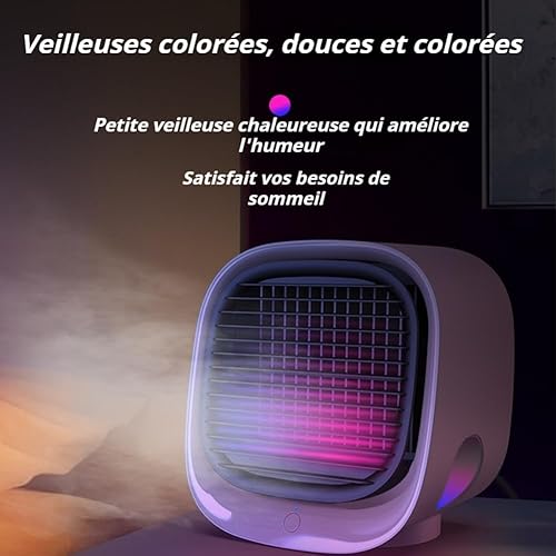 Frostyfuse Climatiseur, Frostyfuse Mini Ventilateur de Climatisation Portable USB, 3 Vitesses de Ventilation, Équipé D'un Réservoir D'eau Grande Capacité De 300 Ml (Blanc)
