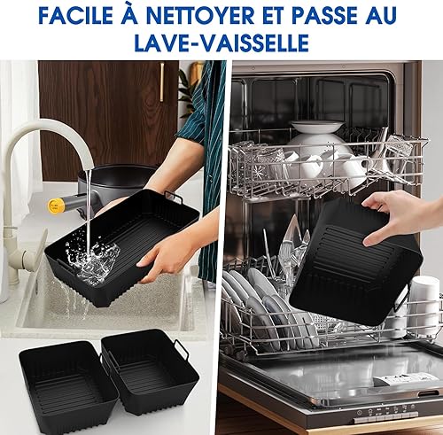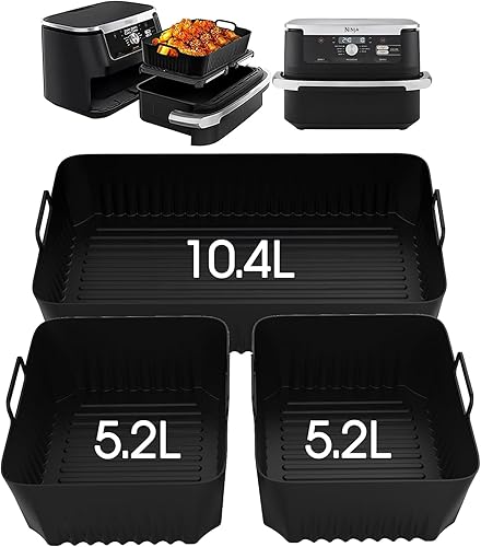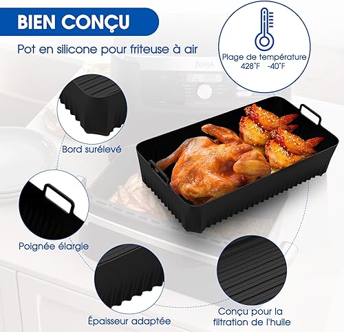 Tuocal Moule Air Fryer pour Ninja AF500EU, 3Pcs Accessoire Silicone Réutilisable Air Fryer Airfryer Pot Carrée pour 10,4 L Ninja Foodi Flex, Moule Air Fryer Ninja