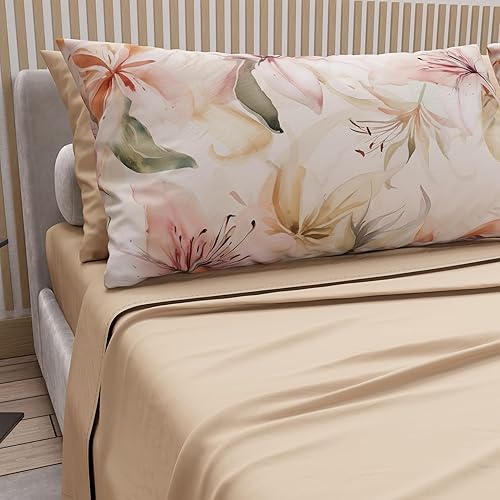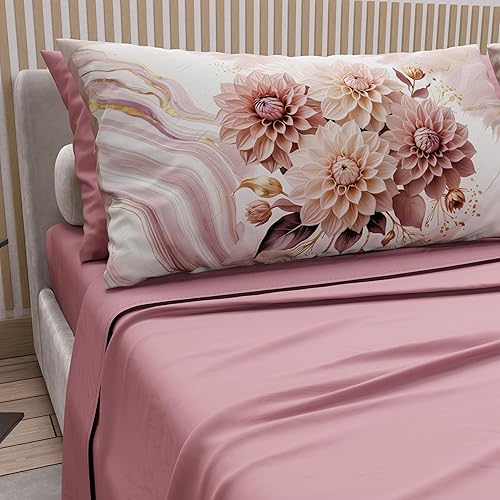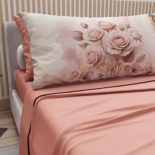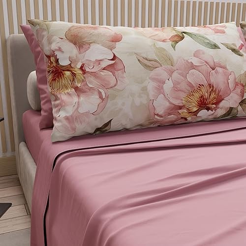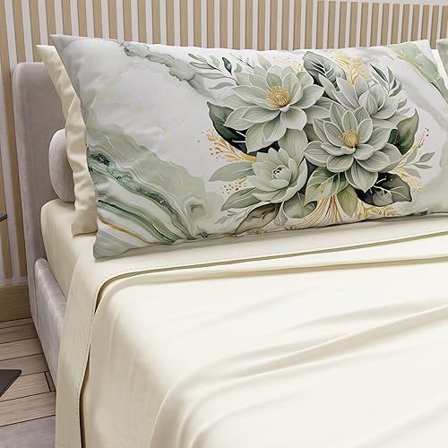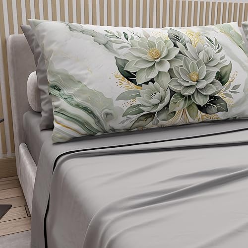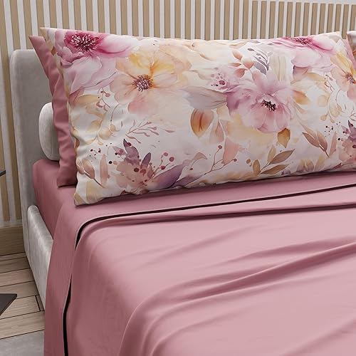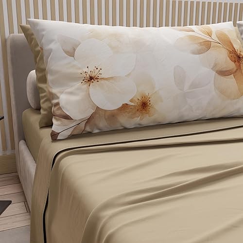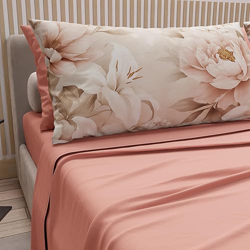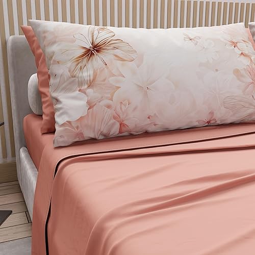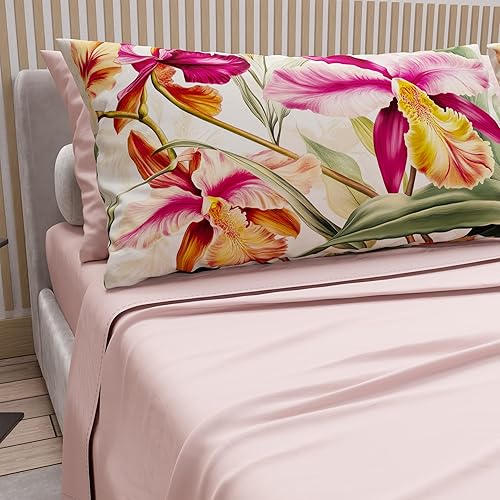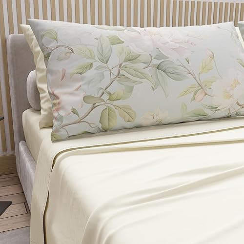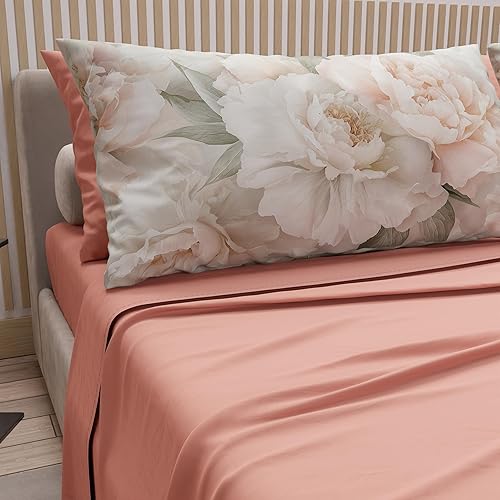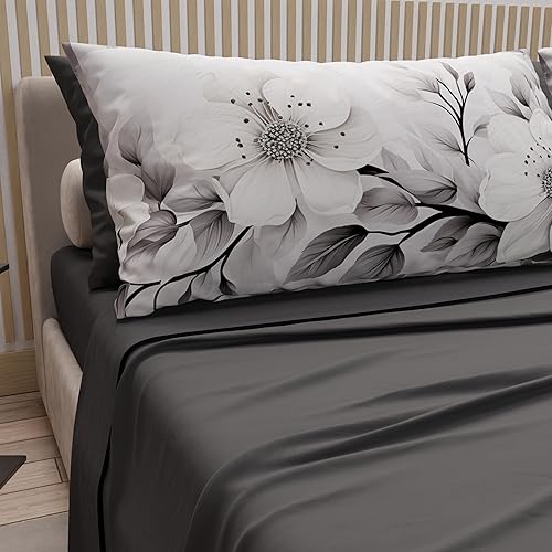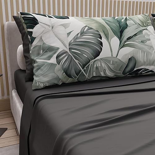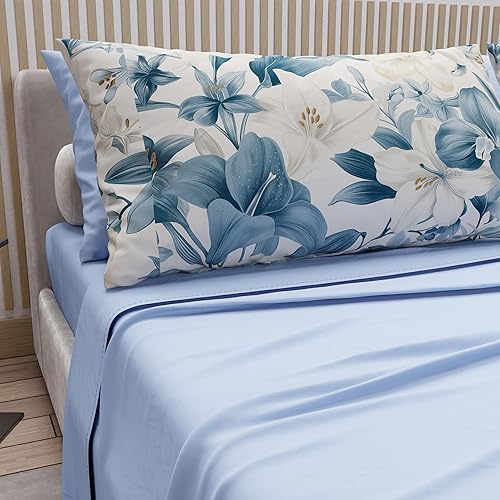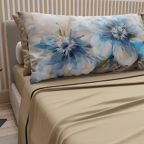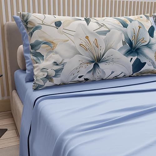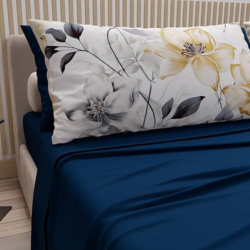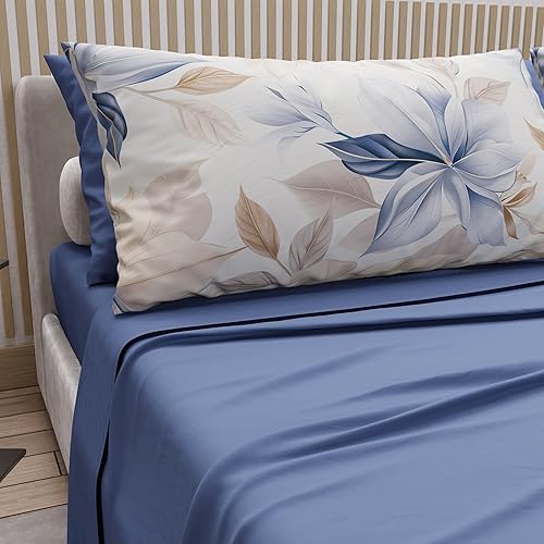 PETTI Artigiani Italiani - Parure de Draps en Coton pour Lit Double avec Taies d’Oreiller et Drap Housse 160x200, Motif Floral 108 Indigo, 100% Fabriqué en Italie