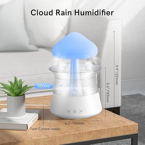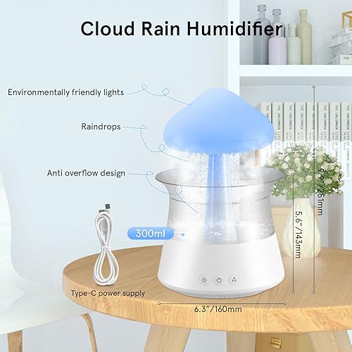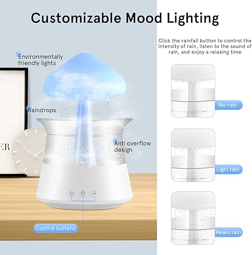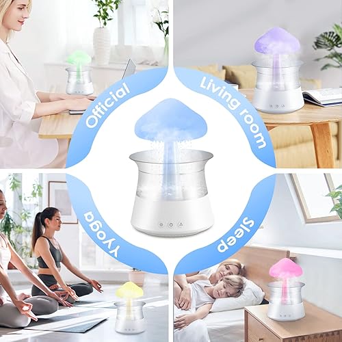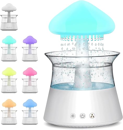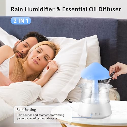 Humidificateur Rain Cloud avec Télécommande, 3 en 1 Humidificateur/Diffuseur d'arômes/Diffuseur d'huile de Veilleuse 7 Couleurs, Diffuseur d'huiles Essentielles de Chevet de Chambre à Coucher