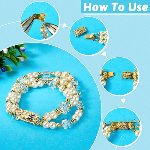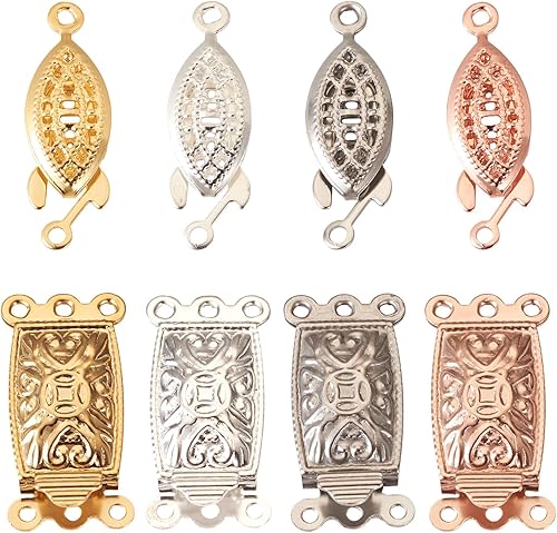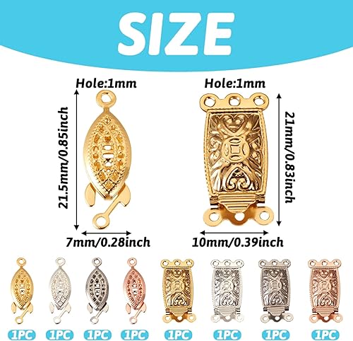 PH PandaHall Lot de 8 fermoirs en acier inoxydable 304 : fermoirs rectangulaires et œil de cheval pour la fabrication de bijoux multi-brins