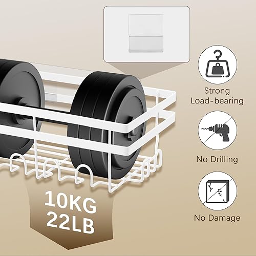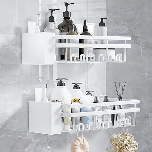 TranRantic 2 Pièces Etagere Douche sans Percage, Rangement Salle de Bain Durable, Etagere Salle de Bain avec Boîte pour Brosse à Dents, Salle de Bain Accessoire pour Gel Douche et Shampoing(Blanc)