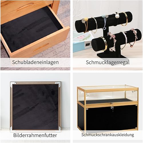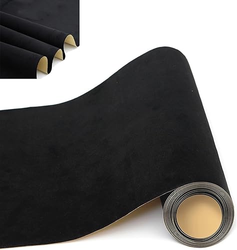 Tissu Microfibre Auto Adhésif, Noir Similicuir Suédine, 15cm x 150 cm Aspect Suédine, Tissu Extensible Film, Pour Intérieur de Voiture, Meubles Rembourrés, Tiroirs à Bijoux