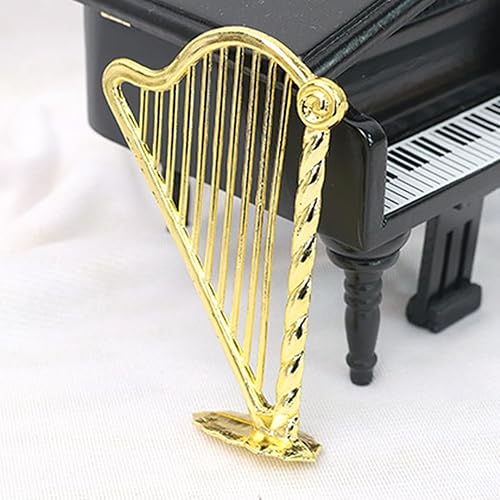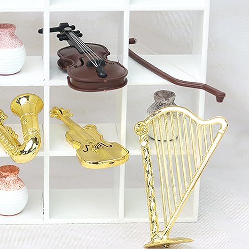 Petites harpes, harpe dorée miniature - Ensemble de modèles d'instruments miniatures de 5 | Instrument de musique, modèle d'instrument de musique miniature 1:12, modèle de harpe pour décoration de mai