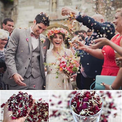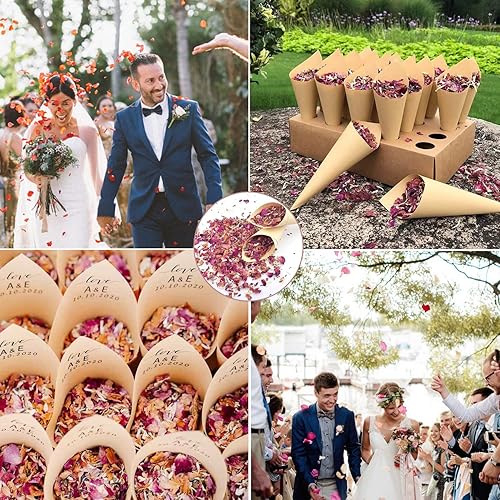 22 Pcs Confettis de Mariage, 32 Cônes De Confettis De Mariage Papier Kraft, Confettis de Pétales de Rose Biodégradable, Naturels Jetant des Pétales de Fleurs Séchées pour Décoration de Fête de Mariage