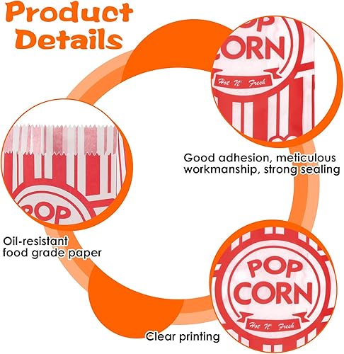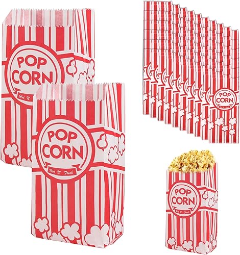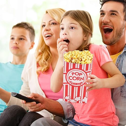 50 Pièces Sac Pop Corn 18x9cm, Sacs à Pop-corn Rouge Blanche Rayé, Frites Candy Popcorn Sachet, Pop Corn Boite, Popcorn Boîtes pour Les Fêtes, Anniversaires, Soirées Cinéma et Soirées Pyjama