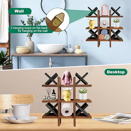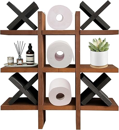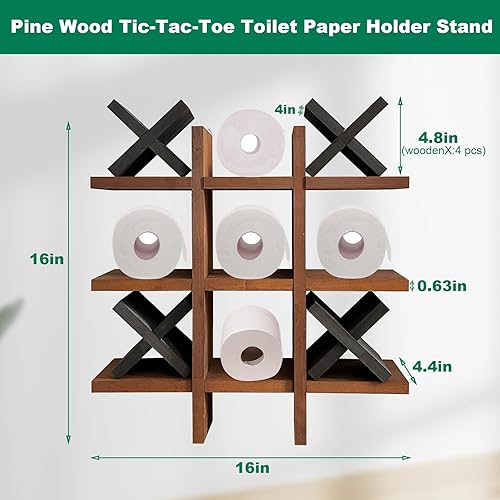 WMYYLX Tic Tac Toe Porte-rouleau de papier toilette, en bois, avec étagère et 4 x en bois, étagère de rangement pour salle de bain d'invités ou décoration de toilettes