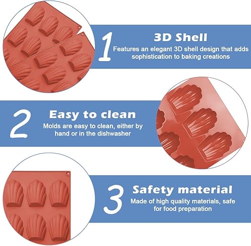 2 Pièces Moule a Madeleine, Madeleine- Moule en Silicone à 9 Trous, Durable et Facile à Nettoyer Antiadhésifs Pâtisserie Plaque, Adapté à la Pâtisserie Maison