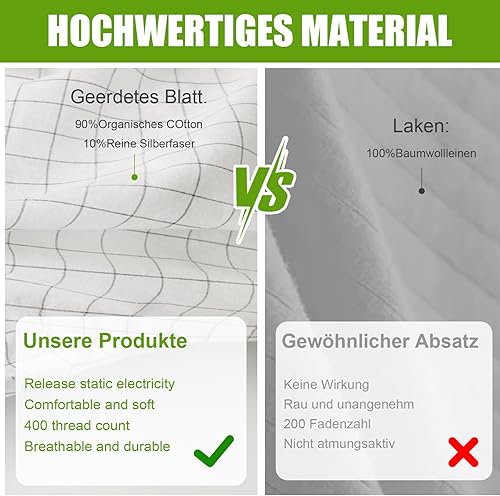Grounding Bed Sheet Tapis de mise à la terre conforme à la norme UE, drap de mise à la terre avec 10 % de fibre d'argent et 90 % coton biologique, tapis de mise à la terre pour un meilleur sommeil,