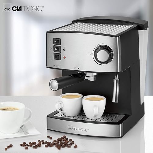 Clatronic cafe café a cappucino 3643 Machine expresso acier inoxydable Front, pression de vapeur 15 bar, 1,6 l, réservoir à eau amovible Noir, 850 W, 2 liters, schwarz-inox, ES 3643
