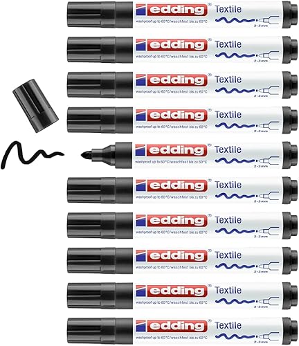 edding 4500 Marqueur pour textiles - étui de 10 couleurs (basic) - pointe ronde de 2-3 mm - feutre textile lavable en machine (60 °C) pour décorer le tissu - marqueur textile