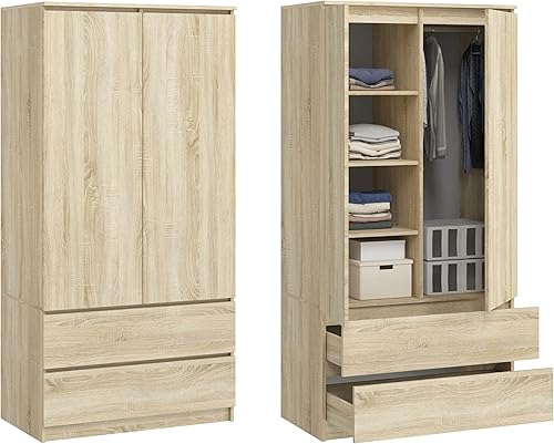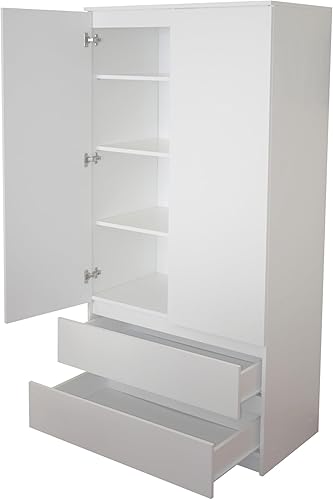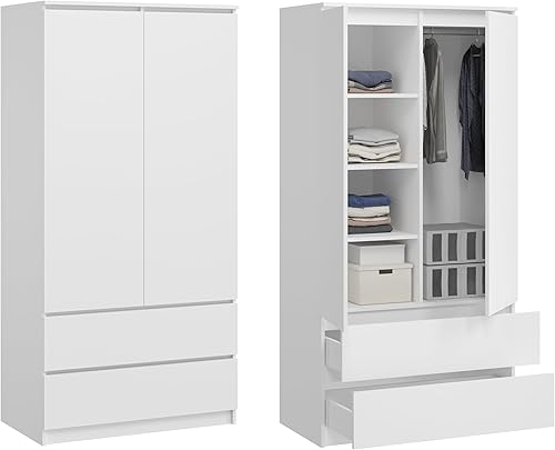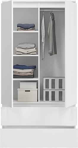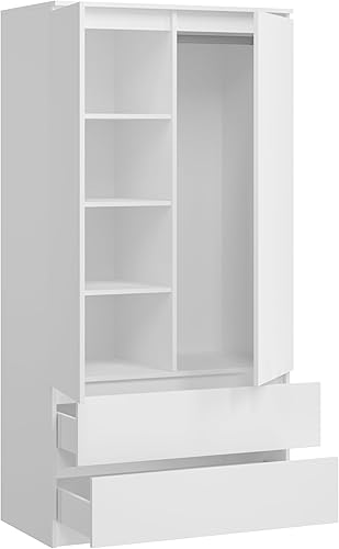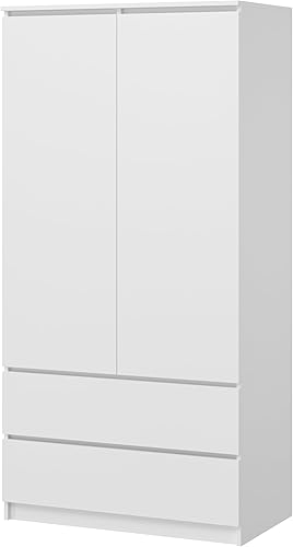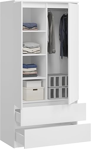 KUBUTKU Grande armoire avec 2 portes, 2 tiroirs, 4 étagères et portemanteau - Armoire multi-usages - 180 x 90 x 50,5 cm - Blanc