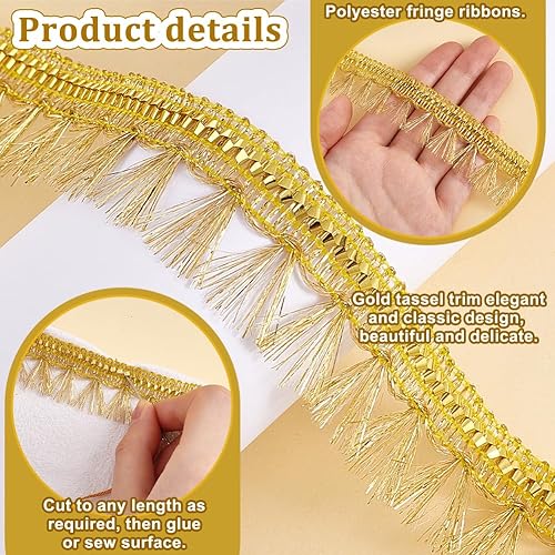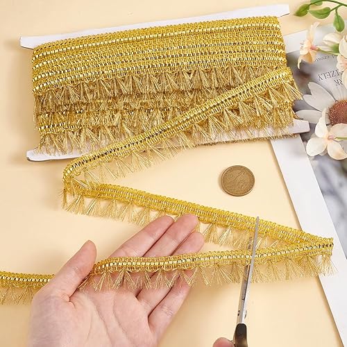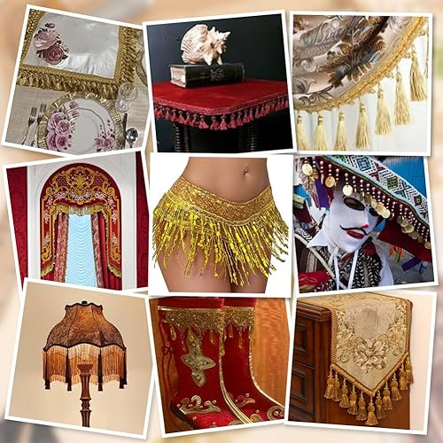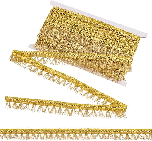PH PandaHall 13.7 m Bordure à Franges Dorée 27mm Ruban de Dentelle Filigrane avec Bordure de Couture à Pompon Garniture Décorative en Tissu Tressé en Polyester pour Rideau Abat Jour Costume