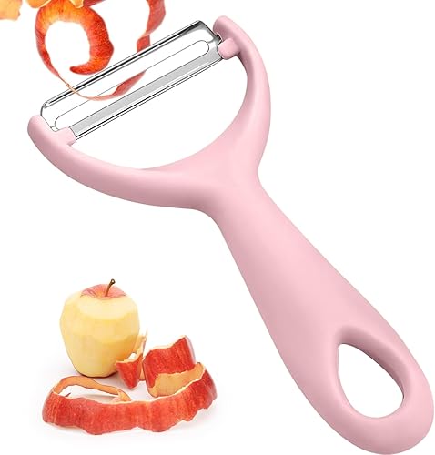 Éplucheurs de pommes de terre, robustes avec poignée ergonomique antidérapante, lame tranchante pour fruits, carottes, légumes, pommes de terre, passe au lave-vaisselle (rose)