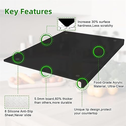 Planche à découper en acrylique noir, extra épaisse et antidérapante pour comptoir de cuisine, tapis de découpe pour fruits et légumes, surface durable et adaptée aux couteaux, facile à nettoyer