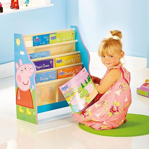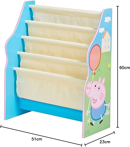 Peppa Pig - Bibliothèque à pochettes- Rangement de livres pour chambre d’enfant, Rose, 60 x 51 x 23 cm