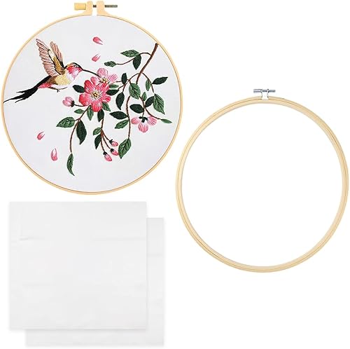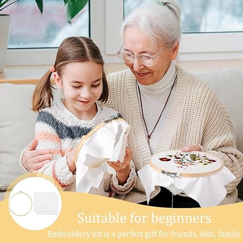 NHPY 3 Pièces Kit de Démarrage de Broderie, Fils à Broder Kit Broderie Debutant, 1 Cerceaux 2 Tissu Brodé, Broderie Débutant Outil pour Amateurs de Couture Adultes Débutants