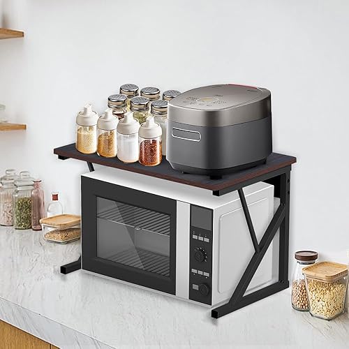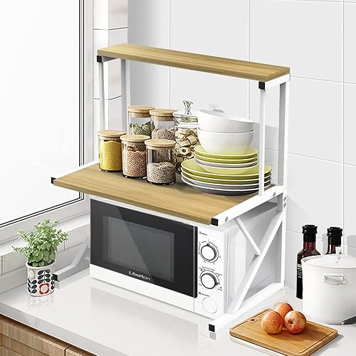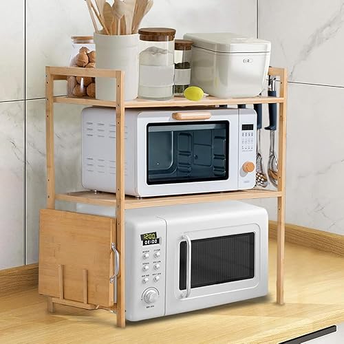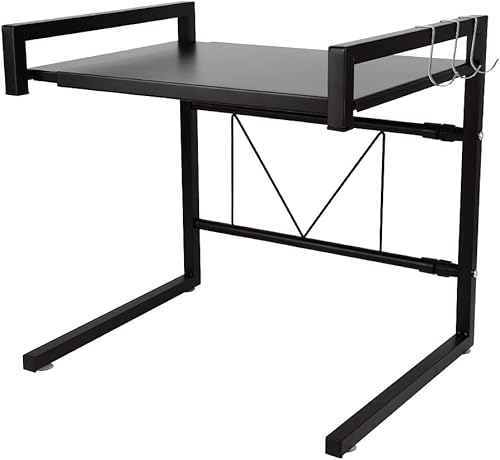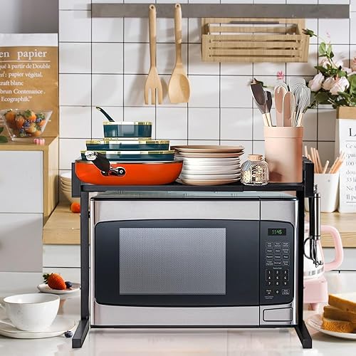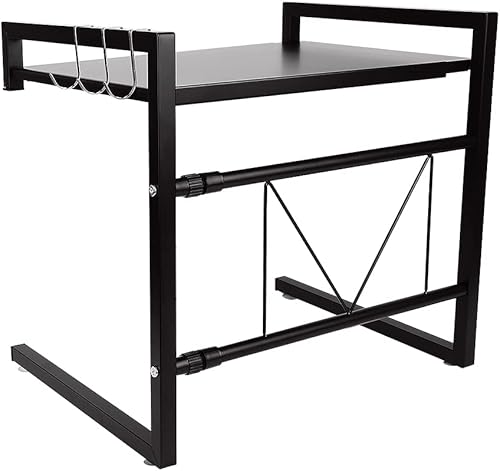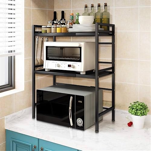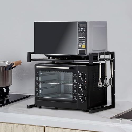 3 Niveaux Support de Four à Micro-Ondes Extensible et Réglables en Hauteur, Etagere Rangement Cuisine Four à Micro Ondes en Acier au Carbone, avec 4 Crochets (Noir-3 Couches, 40-64x36.5x78 cm)
