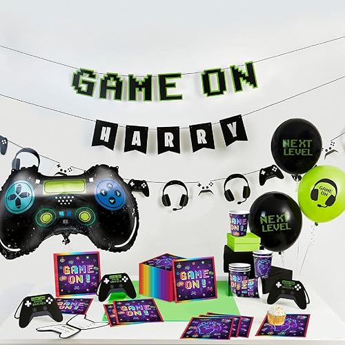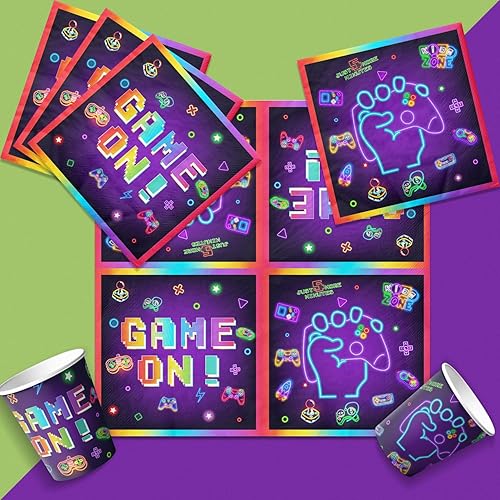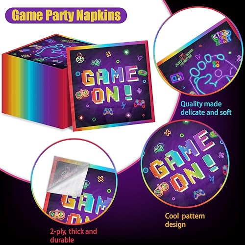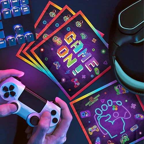 Lot de 100 serviettes en papier jetables pour jeux vidéo - 33 x 33 cm - Décorations d'anniversaire - Serviettes en papier jetables pour joueurs, fête prénatale, jeux et anniversaires