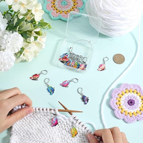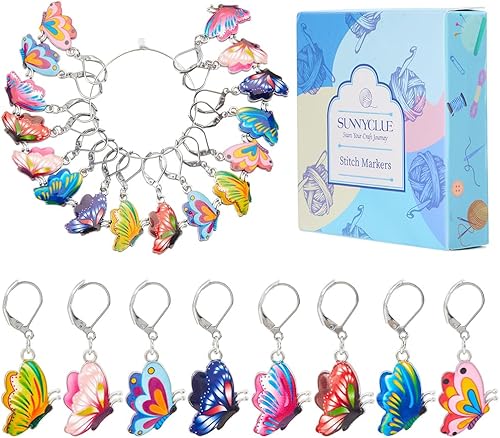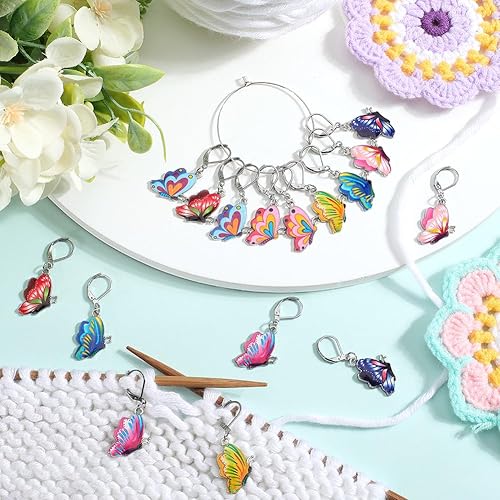 SUNNYCLUE 1 boîte de 16 petits Marqueurs de Point de Crochet en Forme de Papillon Marqueurs de Tricot Mignons Boucles D'Oreilles à Levier Amovibles Crochets en Émail Marqueurs de Point de Crochet Brel