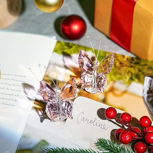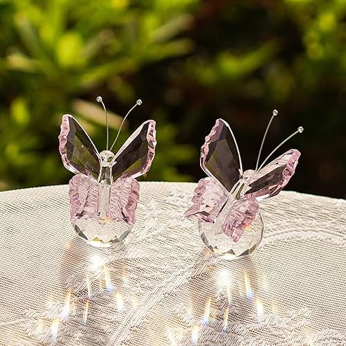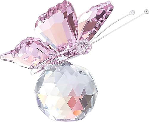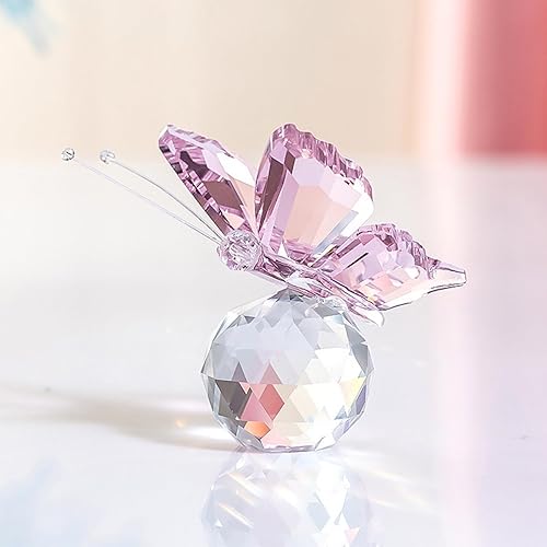 GmwyCzV Boule de Cristal Papillon,4.5 cm Boule de Cristal 3D Gravée en Forme de Papillon,Figurine Décorative en Crystal avec Base de Verre, Statue d'animal pour Décoration de Maison (Rose)