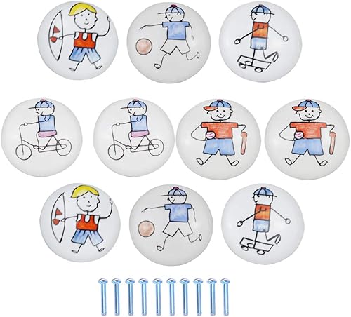 Batop Lot de 10 Bouton de Meuble Enfant, Boutons de Tiroir de dessin animé, en Céramique, Peints à La Main - Garçon