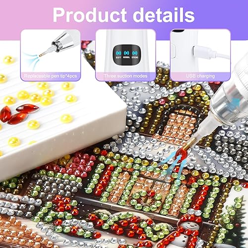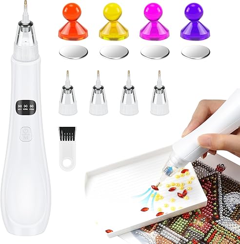 Stylo de peinture diamant électrique - Accessoires de peinture diamant sous vide - Accessoires de peinture diamant - 4 têtes de rechange - 3 niveaux d'aspiration réglables - Stylo de peinture diamant