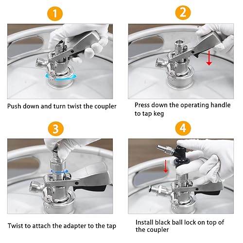 PERA Kit adaptateur coupleur de fût avec déconnexion de verrouillage à bille pour brassage maison - Argenté - Mécanique - Bille - Manuel