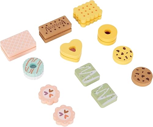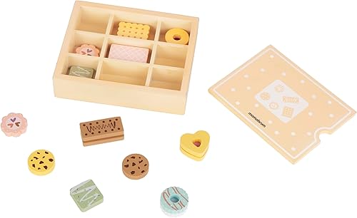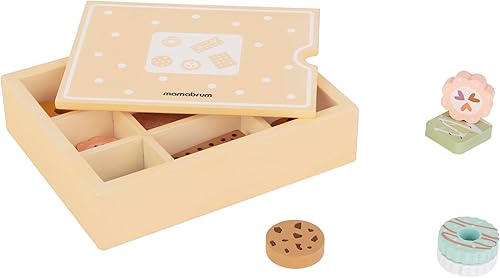 Mamabrum, boîte à Biscuits en Bois, 1 boîte à Biscuits en Bois, 12 Biscuits en Bois, Biscuits de différentes Couleurs et Formes, Panier Pique-Nique Design coloré, Boulangerie pour Enfants