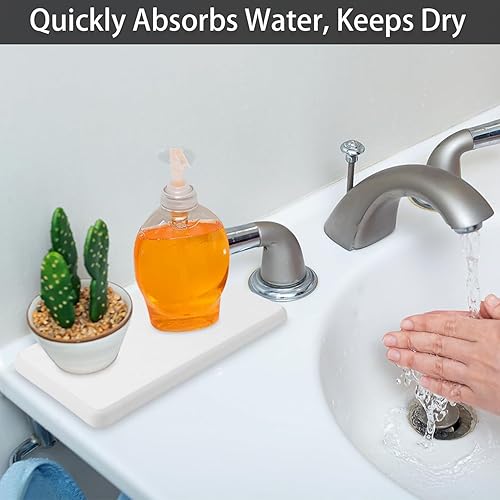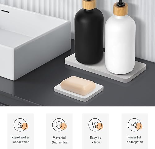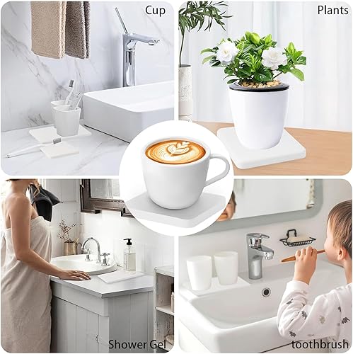 4 Pièces Plateau en Pierre Absorbant l'eau, Plateau en Terre de diatomée, Dessous de Verre en diatomite Absorbant l'eau, pour Cuisine Et Salle de Bain Plateau en Pierre Absorbant l'eau (White)