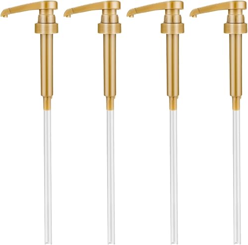 4 Pompe à Sirop à Café, Convient à la Plupart des Bouteilles de Sirop de 750 Ml, Doré Coffee Syrup Pump Distributeur Sirop Pompe pour Café Maison Bouteille de Sirop à Café, Ne Coule Pas